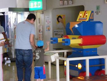 お父さんとロボハチくんで遊びます